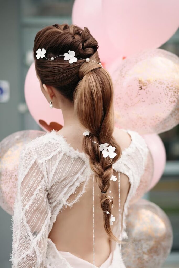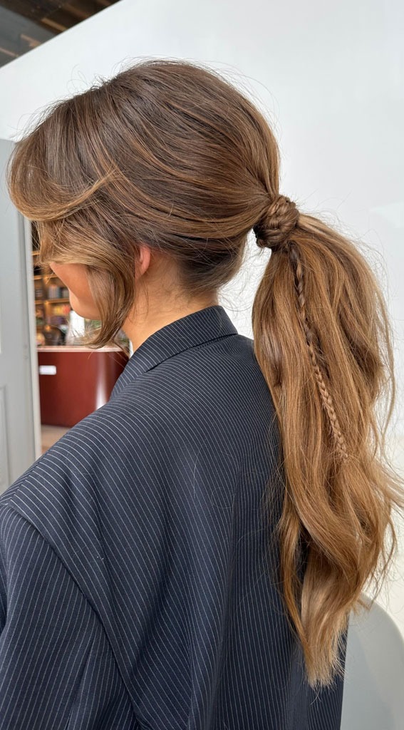 The ponytail remains a go-to style for its practicality and versatility. High ponytails create energy and youthfulness, while low ponytails offer sophistication and elegance. Modern ponytail variations include bubble ponytails, braided ponytails, and ponytails with hair wrapped around the elastic for a polished finish.