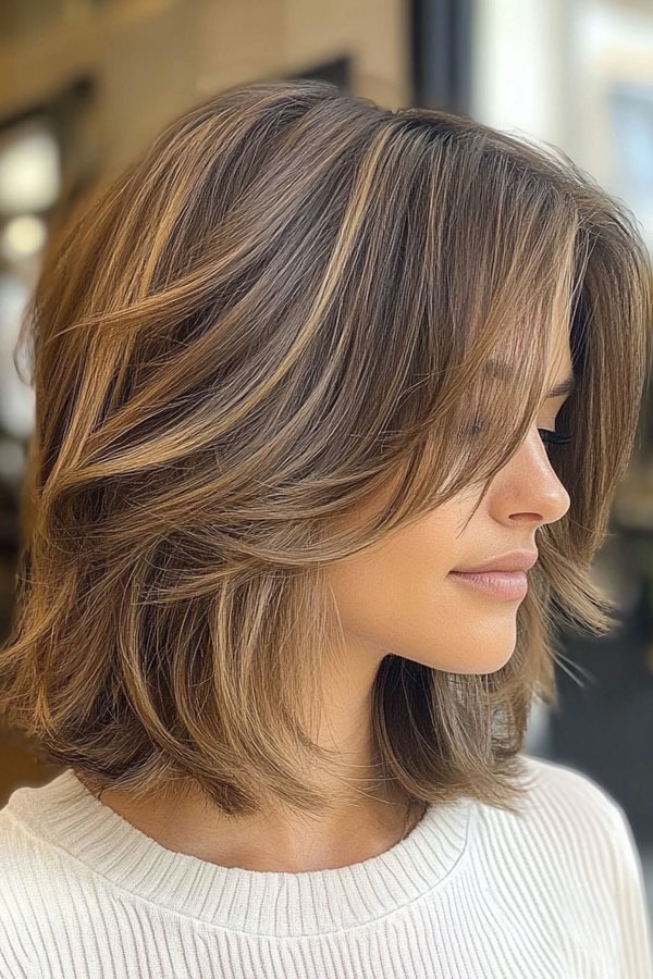 The lob combines the elegance of longer hair with the practicality of a bob cut. This versatile length hits just above or at the shoulders, making it flattering for most face shapes and hair types. The lob can be styled straight for a sleek look, wavy for casual elegance, or with beachy waves for a relaxed vibe. It’s perfect for women transitioning from long to short hair.