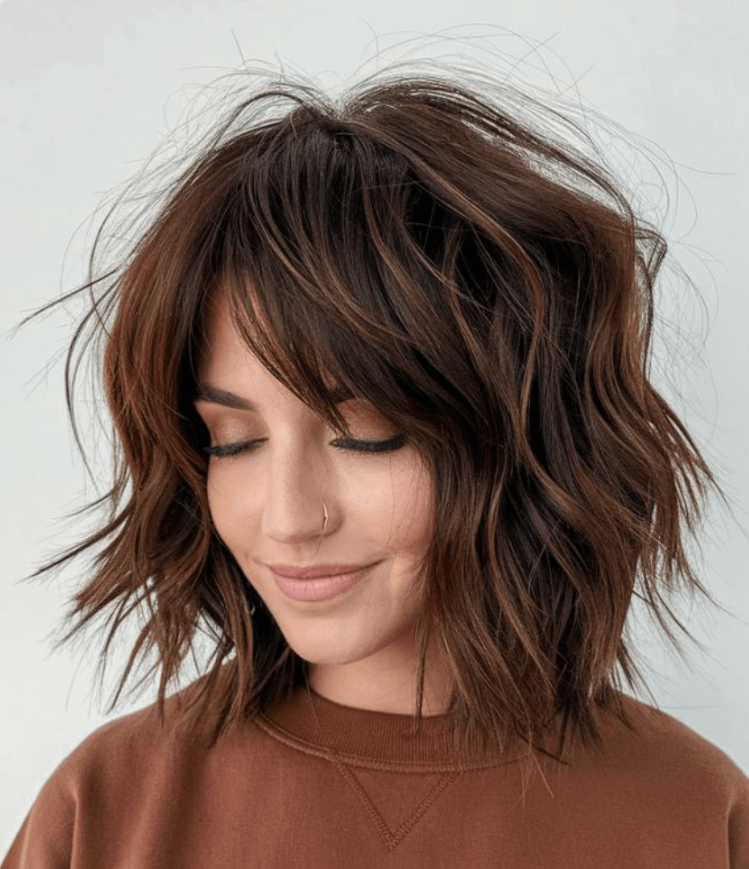 The shag haircut features choppy layers throughout the hair, creating texture, movement, and volume. This rock-and-roll inspired style works beautifully on various hair lengths and adds effortless cool to any look. Modern shags incorporate face-framing layers and can be customized for different hair textures, from fine and straight to thick and curly.