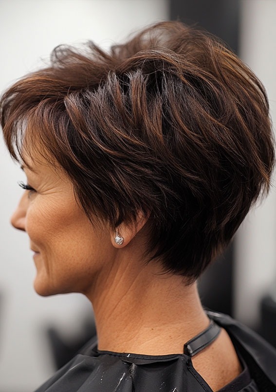 The textured crop features short, choppy layers that create natural volume and movement. This modern cut works particularly well for women with fine hair who want to create the illusion of thickness. The style can be tousled for casual appeal or smoothed for more polished looks, making it adaptable for various occasions.