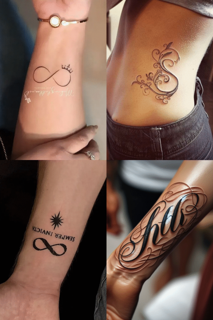 Simple names or initials of children, parents, partners, or departed loved ones remain timelessly popular. These deeply personal tattoos can be as simple as “Mom” in elegant script or initials connected with an ampersand (&). Placement options are endless—fingers, wrists, behind the ear, or over the heart. The key is choosing a font that reflects your relationship with that person.
