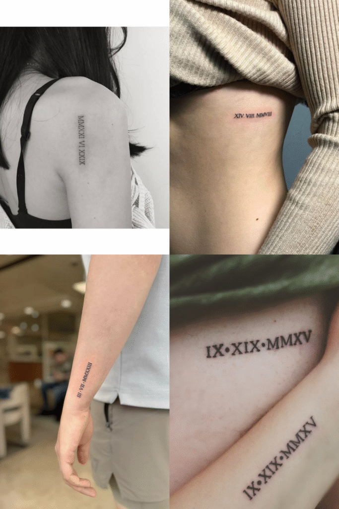 Roman numeral tattoos offer a sophisticated way to commemorate important dates—birthdays, anniversaries, or milestone moments. These timeless symbols work perfectly along the spine, forearm, or ribcage. The beauty lies in their subtlety; only you know the significance of “XVII.VI.MCMXC” (your birth date, perhaps). They’re also incredibly versatile in size and can be as small or elaborate as desired.